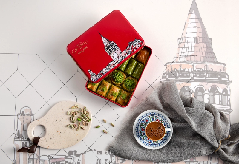 Karaköy Güllüoğlu için özel olarak tasarladığımız ambalaj ve kutuların tasarım ve üretim süreçlerini tamamlamış olmanın heyecanını yaşıyoruz! Bu projede, markanın köklü mirasını yansıtan, zarafet ve kaliteyi bir araya getiren ambalajlarla fark yaratmayı hedefledik.
